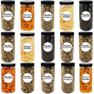 POJEMNIK PLASTIKOWY SŁOIK NA ŻYWNOŚĆ 1,25L 15 SZTUK +ETYKIETY