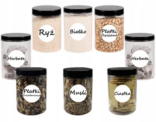 POJEMNIK PLASTIKOWY SŁOIK NA ŻYWNOŚĆ 1L 8 SZT + ETYKIETY