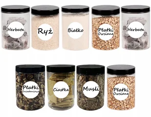 POJEMNIK PLASTIKOWY SŁOIK NA ŻYWNOŚĆ 750ML 9 SZT + ETYKIETY