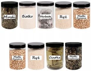 POJEMNIK PLASTIKOWY SŁOIK NA ŻYWNOŚĆ PRZYPRAWY 750ML 9 SZTUK + ETYKIETY