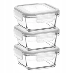 POJEMNIK SZKLANY DO ŻYWNOŚCI Z POKRYWKĄ 400 ml 3 SZT kwadratowy