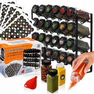 ZESTAW - METALOWY STOJAK PRZYPRAWNIK 4 POZIOMOWY FALA + 24x SZKLANE SŁOICZKI 120 ML NA PRZYPRAWY + 200x NAKLEJKI + MAŁY LEJEK! ✅ Metalowy stojak o eleganckim...