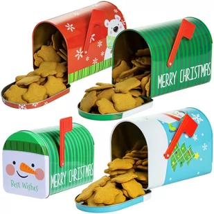 pingwin, miś, bałwan Szukasz oryginalnych i praktycznych puszek, w których przechowasz pierniczki, by nabrały miękkości, a które dodatkowo będą nietuzinkową ozdobą? Zestaw trzech ozdobnych metalowych puszek w kształcie amerykańskiej skrzynki pocztowej to doskonały sposób na przechowywanie produktów sypkich, słodyczy, cukierków czy świątecznych łakoci. Puszki mają wygodne, zamykane wieczko, które zabezpiecza zawartość przed wysypaniem. Są przeznaczone do kontaktu z żywnością i zostały wykonane z wytrzymałej blachy stalowej. To kapitalny pomysł na oryginalny, świąteczny prezent.