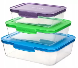 Sistema komplet pojemników do przechowywania żywności, 3 sztuki, kolory: 1 x jasnozielony, 1 x niebieski i 1 x różowy, 1 - opakowanie 41647