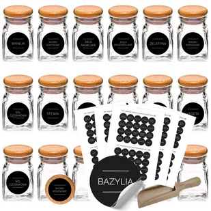 Słoiczki słoiki na przyprawy 150ml 24szt +200 naklejki M2 łopatka z korkiem