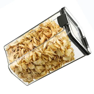 KWADRATOWA KONSTRUKCJA: Kwadratowy zbiornik efektywnie wykorzystuje przestrzeń, zapewnia wygodne przechowywanie i układanie w stosy oraz maksymalizuje oszczędność miejsca w kuchni 4. PRZEZROCZYSTY WYGLĄD: Przezroczysta konstrukcja zbiornika na ziarno ułatwia przeglądanie wewnętrznych elementów, ułatwia znalezienie potrzebnej żywności i zwiększa wygodę użytkowania 5. HERMETYCZNE USZCZELNIENIE: