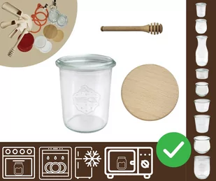 wody i lemoniady (mycie ręczne); Dodatkowe akcesoria to: bukowe czerpaki do miodu (mycie ręczne); bukowe łopatki/ dozowniki (mycie ręczne); metalowe zapinki do wieczek (można myć w zmywarce); WSKAZÓWKA DLA PRODUCENTÓW Z BRANŻY GASTRONOMICZNEJ Jeżeli Jesteś właścicielem firmy oferującej przetwory, to wybierając ?WECK?i? ze szklanymi pokrywkami, masz dużą pewność, że potrawy nie ulegają zepsuciu oraz uszkodzeniu podczas transportu. Stosując strategię oferowania rabatów za zwroty nieuszkodzonych słoików, zaskarbisz sobie grono stałych, lojalnych KONSUMENTÓW. Jest to obecnie dość popularna praktyka wśród producentów żywności w słoikach - KLIENCI zwracają TOBIE słoiki a TY w zamian dajesz im upust na kolejne zamówienia. To również ważny element społecznej odpowiedzialności biznesu - jesteś producentem świadomym - masz na uwadze ochronę środowiska.