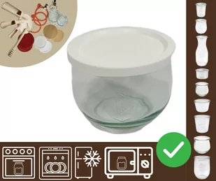Słoik żaroodporny WECK Materiał: szkło Kolor: transparentny Pojemność słoika: 370 ml Wysokość słoika: 8,6 cm Rodzaj wieczka: