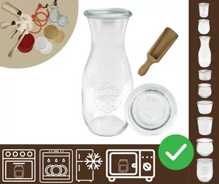 Karafka żaroodporna WECK Materiał: szkło Kolor: transparentny Pojemność słoika: 1062 ml Wysokość słoika: 25,8 cm Rodzaj wieczka: