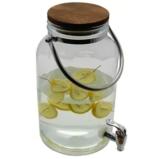 SŁÓJ Z KRANIKIEM 6L SŁOIK SZKLANY NA LEMONIADĘ WODĘ Słój 6 litrowy z kranikiem do wody smakowej z owocami i lodem. Pyszna lemoniada, mrożona herbata, orzeźwiające soki dla całej rodzinny. ✅Słój wykonany z grubego szkła, pozwoli zachować dłużej niską temperaturę. ✅Drewniana pokrywka chroni napoje przed niepowołanymi gośćmi np. pszczoły, muchy i innymi wścibskimi owadami.