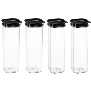 Szerokość: 10,5 cm Wysokość: 29,6 cm Długość: 10,5 cm Pojemność: 1,7 L Kolor: transparentny/czarna pokrywka Ilość pojemników w zestawie: