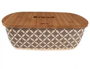 Chlebak metalowy z bambusową pokrywą owalny duży szary