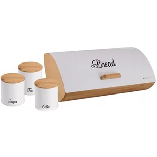 Elegancki chlebak firmy Kassel z kompletem pojemników na herbatę, kawę i cukier. Wyróżnia go nowoczesne wzornictwo oraz uniwersalna kolorystyka. Wysublimowany design nada niepowtarzalny charakter każdej kuchni. Dopełnią go inne akcesoria kuchenne, które możemy wybrać z obszernej oferty firmy Kassel.