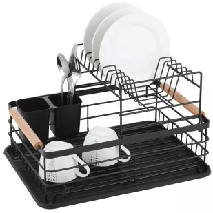 Wymiary: długość: 43 cm szerokość: 32 cm wysokość: 27 cm Cechy: Wysokiej jakości, powlekana proszkowo metalowa rama Trwała metalowa konstrukcja Suszarka do naczyń posiada z obu stron wygodne, drewniane uchwyty do przenoszenia, które mogą by przeznaczone do zawieszania ściereczki kuchennej. Niewielki ociekacz z rowkami umożliwiający ustawienie maksymalnej liczby talerzy Tacka na dole zabezpiecza przed zamoczeniem kuchni Odłączany plastikowy ociekacz na sztućce Pamiętaj! Specjalna linia wyprodukowana dla marki Edinos, dzięki której otrzymujesz aż 10-letnią gwarancję oraz możliwość bezpłatnego zwrotu produktu w terminie 100 dni od zakupu.