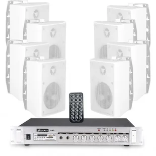 Zestaw białych głośników naściennych 8x 4'' z 2-strefowym wzmacniaczem one size