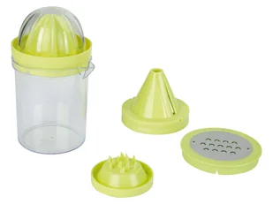- zróżnicowany zestaw składający się z wyciskarki do cytrusów, mini-tarki, krajalnicy spiralnej i pojemnika