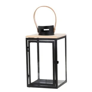 Lampion MY HOME Dark Leather 16 x 16 x 30 cm Czarno-beżowy jest połączeniem minimalistycznego stylu z naturalnymi akcentami, świetnie pasuje do wnętrz rustykalnych, skandynawskich i loftowych. Stalowa czarna konstrukcja z przezroczystymi szklanymi ściankami jest wytrzymała i jest świetną osłoną dla płonących świec. Pokrywka jest wykonana z drewniana, a gruby pasek z prawdziwej skóry, pozwala wygodnie przenosić lampion. Wymiary: 16 x 16 x 30 cm (dł. x szer. x wys.). Waga: 1. 123 kg.