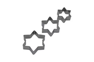 Zestaw metalowych wykrawaczy do ciastek i pierników w kształcie gwiazdek o różnych rozmiarach.