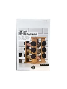SMUKEE Zestaw Przyprawników 12 szt15 x 15 x 24 cm Praktyczna podstawka, obrotowa ułatwiająca dostęp do wybranych przyprawElegancki desing Naturalne drewno bambusowe