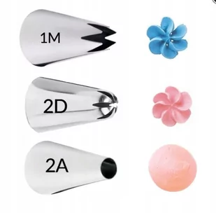 ZESTAW DUŻYCH TYLEK 3 SZT - 1M 2D 2A Wilton nr produktu: 02-0-0144 W komplecie znajdują się trzy duże tylki cukiernicze: 1M - otwarta gwiazdka ( rozetki, szlaczki, kwiatki ) 2D - zamknięta gwiazdka (kwiatki, falbanki ) 2A - okrągła ( makaroniki, bezy ) Tylki przeznaczone do wykonywania dekoracji z lukru, mas i kremów. Można używać w połączeniu z dużym adapterem Wilton. Wymiary: średnica podstawy – ok.
