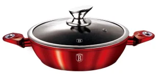 Poznaj garnek , który łączy w sobie nowoczesną technologię i stylowy design. Wykonany z kutego aluminium i wykończony wyjątkowo trwałą powłoką granitową zapewnia doskonałą wydajność i trwałość. Jego czerwona, metaliczna powłoka zewnętrzna dodaje elegancji, podczas gdy ergonomiczne uchwyty typu SOFT TOUCH gwarantują komfort i bezpieczeństwo podczas gotowania. jest idealnym wyborem dla tych, którzy szukają wydajności i oszczędności energetycznej, dzięki zaawansowanemu systemowi TURBO INDUCTION, który znacząco przyspiesza czas nagrzewania. Wymiary: Średnica - 32cm Wysokość - 7,8cm Pojemność: