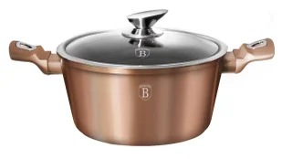 Średnica - 20cm Wysokość- 10cm Pojemność - 2,5L Cechy naczyń: Potrójna powłoka granitowa anty-przywierająca Materiał: wysokiej jakości odlewane aluminium Soft-Touch Handle: silikonowy uchwyt Szklana pokrywa z odpowietrznikiem System TURBO INDUCTION (bardzo szybko nagrzewają się) 35% oszczędność enegrii Możliwość mycia w zmywarce Do wszystkich rodzajów kuchenek: gazowej, elektrycznej, ceramicznej, halogenowej, indukcyjnej Kolor: