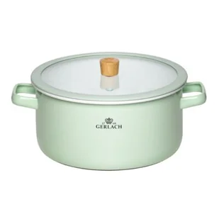 Garnek GERLACH Natur Enamel 24 cm Zielony łączy nowoczesny design i zdrowe gotowanie. Garnek o średnicy 24 cm i pojemności 5 l to idealny wybór dla osób, które cenią sobie zdrowe gotowanie, prostotę oraz elegancki, naturalny styl. Pokrycie wysokiej jakości emalią sprawia, że naczynie jest bezpieczne w kontakcie z żywnością, nie chłonie zapachów i nie reaguje nawet z kwaśnymi potrawami. To rozwiązanie idealne również dla alergików.