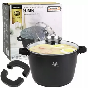 Garnek granitowy Rubin 6,2 L z pokrywką - nadaje się do indukcji, silikonowe uchwyty, trwała powłoka GREBLON C3