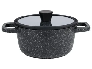 korpus aluminiowy, dno aluminiowe z wtopioną płytą indukcyjną ze stali nierdzewnej Grubość dna: ok. 5 mm Powłoka: Ilag® Ultimate HL Pokrywka: tak, szklana Uchwyt: 2 sztuki Krawędź ochronna: