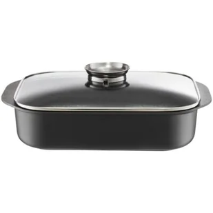 Brytfanna AMBITION Perfecto jest bardzo głęboka, co umożliwia łatwe i wygodne smażenie i pieczenie potraw. Dzięki wykonaniu z odkuwanego aluminium, naczynie jest niezwykle odporne na odkształcenia. Aluminium zapewnia równomierny przepływ ciepła na całej powierzchni brytfanny, niezależnie od miejsca źródła energii. Grube ścianki doskonale akumulują ciepło, danie pozostaje dłużej ciepłe, a samo gotowanie jest bardziej ekonomiczne. Powłoka Teflon™Profile składa się ze specjalnej warstwy kryjącej odporna na zarysowania, warstwy z cząsteczkami twardego węglika krzemu oraz warstwy podkładowej ze wzmocnieniem ceramicznym.