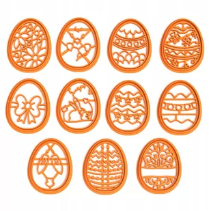 Pisanki - Jajka Wielkanocne Zestaw 11 foremek Wielkanoc to świetna okazja aby spędzić trochę czasu z najbliższymi robiąc ciasteczka. Jeżeli ktoś lubi robić pisanki, to lubi również dekorować ciasteczka dlatego przygotowaliśmy zestaw 11 foremek do ciastek, które urozmaicą Twoje wielkanocne smakołyki. W skład zestawu wchodzi 11 najpopularniejszych wzorów. Są to wzory zwierzątek wykluwającego się kurczaczka, zajączka oraz królika. Jest również jajko z kokardą jak również tradycyjne wzorki.