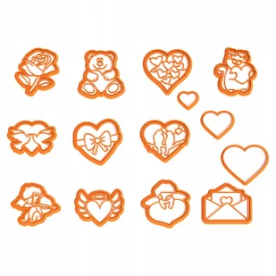 Zestaw dwunastu foremek z motywem Walentynek. Ciasteczka przygotowane za pomocą naszych foremek z pewnością skradną serce nie jednej osobie: -) W skład zestawu wchodzi: List miłosny w kopercie Miś z serduszkiem Serce ze wzorkiem Gołąbki i serce Serce z kokardą Kot z sercem Aniołek z serduszkiem Amor Róża Trzy serca Zakochane gołębie Serce ze skrzydłami Na pozostałych naszych aukcjach znajdziesz każdą z foremek z zestawu do kupienia samodzielnie. W zestawie jednak sporo taniej.