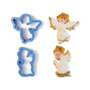 Zestaw zawiera dwie plastikowe foremki do ciastek w kształcie aniołków. Ostre krawędzie foremek dokładnie wycinają kształty ciasteczek, górna szersza krawędź...
