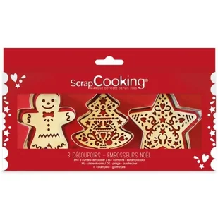 ScrapCooking - Zestaw 3 wycinaczy + Wytłaczacze do drewna bożonarodzeniowego - Wytłaczanie ciast ze stali nierdzewnej - Akcesoria do ciastek tłoczonych - 2110