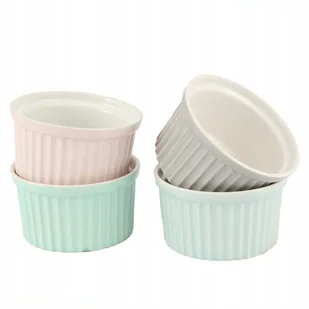 Zestaw składający się z 4 sztuk porcelanowych miseczek do muffinek, creme brulle, sufletu Wykonana z porcelany - okrągła foremka do muffinek, creme brulle, m...