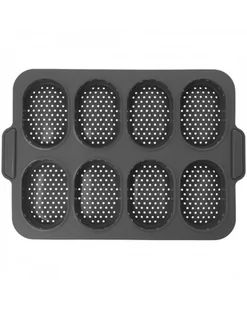 wymiary wewnętrzne pojedynczego wgłębienia na bułkę: 9,5 x 6,3 x 2,2 cm można używać w piekarniku można myć w zmywarce nadaje się do zamrażarki wymiary: wysokość: 2. 5cm, długość: 34. 5cm, szerokość: 23. 8cm Perforowane dno Perforacja zapewnia optymalną cyrkulację powietrza i temperaturę pieczenia Produkt fabrycznie nowy Produkt fabrycznie nowy zapakowany w oryginalnym opakowaniu dodatkowo zabezpieczony na czas transportu.