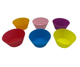 SILIKONOWE FOREMKI DO PIECZENIA MUFFINEK 6 szt. Foremki silikonowe odporne na temperatury od -40 do +230 . Przeznaczone do kontaktu z żywnością. Nadają się do mycia w zmywarce. Można używać w piekarnikach, kuchenkach mikrofalowych i zamrażarkach.
