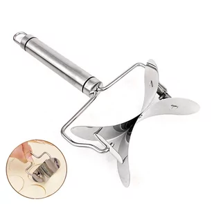 Wykrawacz do ciasta na pierogi 10cm (standardowe pierogi). Za pomocą urzadzenia w łatwy i szybki sposób wykroisz ciasto na pierogi w formie kółek o średnicy 10cm. Jednym pociągnieęciem na stolnicy wykroisz wiele gotowych fragmentów ciasta na pierogi które w następnej kolejności można napełniać farszem i formować. Wykonany ze stali nierdzewnej T304 o jakości spożywczej, mocny i trwały. Bezpieczny i niezawodny materiał, odporny na korozję, łatwy do czyszczenia.