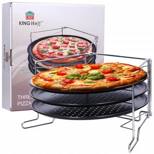 ZESTAW 3 BLACH NA STOJAKU DO PIECZENIA PIZZY KINGHOFF ZESTAW ZAWIERA