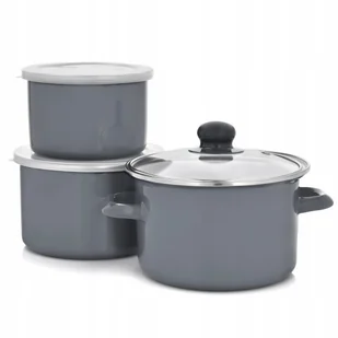 29316 Komplet garnków emaliowanych 3-elementowy szary EMALIA OLKUSZ Marka: Emalia Olkusz Materiał: Stal Zastosowanie: Indukcja,Kuchenka elektryczna,Kuchenka gazowa,Płyta ceramiczna Kolor: czarny,przezroczysty,srebrny,szary Wzór: