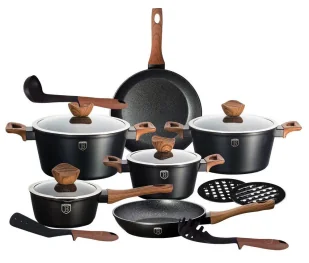 Zestaw garnków Brefix 9X wnosi powiew świeżości do każdej kuchni. Wykonane z kutego aluminium z potrójną powłoką granitową oferują nie tylko wysoką odporność na zarysowania, ale również doskonałe właściwości nieprzywierające. Czarne wykończenie dodaje im eleganckiego charakteru, a system TURBO INDUCTION gwarantuje szybkie nagrzewanie, co pozwala zaoszczędzić nawet 35% energii. Kompatybilne ze wszystkimi rodzajami kuchenek, te garnki są idealnym rozwiązaniem dla nowoczesnych kucharzy ceniących sobie efektywność i design. Silikonowe uchwyty typu SOFT TOUCH zapewniają wygodę i bezpieczeństwo użytkowania nawet podczas najbardziej intensywnego gotowania.