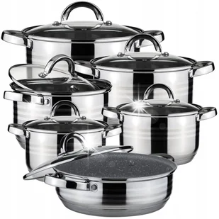 12 CZĘŚCIOWY KOMPLET GARNKÓW - RONNER AUSTRIA (SH-107TL) Wykonany z wysokiej jakości stali nierdzewnej Akutermiczne dno posiada specjalną 7-mio warstwową aluminiową płytę, która umożliwia szybkie i równomierne rozprowadzenie ciepła i długie utrzymanie temperatury W zestawie garnek z potrójną powłoką granitową zapobiegającą przywieraniu potraw i umożliwiającą smażenie z mniejszą ilością tłuszczu Łatwe nakładanie potraw i utrzymanie garnków w czystości Pokrywki szczelnie przykrywające garnki Stal nierdzewna polerowana na połysk z ozdobnymi satynowymi pasami Przystosowany do kuchenek: gazowych, elektrycznych, ceramicznych, halogenowych i indukcyjnych Uchwyty odporne na nagrzewanie Szklane pokrywy z odpowietrznikami Łatwe do mycia Skład zestawu: Garnek z pokrywką 2,1L (Ø16 x 10,5 cm) Garnek z pokrywką 2,1L (Ø16 x 10,5 cm) Garnek z pokrywką 2,9L (Ø18 x 11,5 cm) Garnek z pokrywką 3,9L (Ø20 x 12,5 cm) Garnek z pokrywką 5,5L (Ø24 x 14,5 cm) Garnek z powłoką granitową z pokrywką 2,8L (Ø24 x 7,5 cm) Pojemność podawana przez producenta mierzona jest do rantu garnka