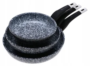 Zestaw trzech patelni z powłoką marmurową Marmurowa powłoka charakteryzuje się bardzo wysoką odpornością na ścieranie i przywieranie. Odporna na wysokie temp...