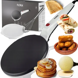 NALEŚNIKARKA ELEKTRYCZNA PATELNIA DO NALEŚNIKÓW SZYBKA BEZ TŁUSZCZU ZESTAW KOMPAKTOWA I WYDAJNA NALEŚNIKARKA 20CM Naleśnikarka Floria to prawdziwa gratka dla miłośników naleśników. Urządzenie bardzo szybko i równomiernie rozgrzewa powierzchnię do smażenia, która pokryta została nieprzywierającą powłoką teflonową. To rozwiązanie sprawia, że nie będzie trzeba używać masła czy oleju podczas użytkowania. REGULACJA TEMPERATURY: AUTOMATYCZNA PŁYTA GRZEWCZA: