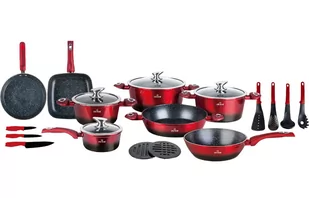 21-częściowy zestaw garnków z przyborami kuchennymi z nieprzywieralna powłoką marmurową firmy ZILNER z serii Burgundy