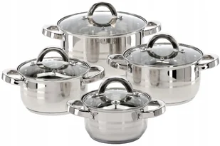 Stalowe GARNKI NA INDUKCJĘ duży ZESTAW GARNKÓW NA GAZ 8 el POKRYWKI Steel