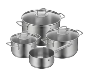 Zestaw czterech garnków Brillant zawiera trzy wysokie garnki z pokrywką (Ø 16 cm / 2 l, Ø 20 cm / 3,7 l, Ø 24 cm / 6,5 l) oraz jeden rondelek bez pokrywki Ø 16 cm / 1,5 l. Zestaw wykonany jest z wysokiej jakości stali nierdzewnej Cromargan® 18/10, która jest stabilna wymiarowo, odporna na działanie kwasów, korozję i typowe zarysowania. Zestaw wyposażony jest w dno TransTherm®, które zapewnia szybkie przewodzenie ciepła, jego długotrwałe utrzymanie i oszczędność energii – garnki nadają się do wszystkich rodzajów płyt grzewczych, w tym indukcyjnych. Pokrywki szczelnie przylegają, ułatwiają gotowanie i zmniejszają ryzyko wykipienia; uchwyty mają ergonomiczny kształt, zapewniając wygodną obsługę. Wszystkie elementy nadają się do mycia w zmywarce, co znacznie ułatwia utrzymanie czystości w zabieganej codziennej kuchni.