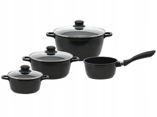 ZESTAW GARNKI+RONDEL 4-częściowy zestaw Black Cast, z programu ELO BASIC, zawiera rondel i trzy garnki z praktyczną, odporną na uderzenia szklaną pokrywką i ...