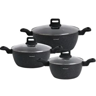 6 elementowy zestaw garnków z niezwykle trwałą powłoką marmurkową. Ekskluzywny design spotyka się z niezrównaną funkcjonalnością, czyniąc ten zestaw idealnym rozwiązaniem dla każdego nowoczesnego kucharza.