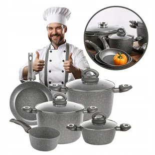- Wysokiej jakości powłoka nieprzywieralna o efekcie kamienia posiada właściwości nieprzywierające, co zapobiega przypalaniu potraw
